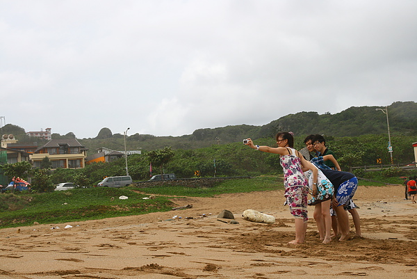 而且頭不時的往海岸邊看..她怕海水會偷襲她